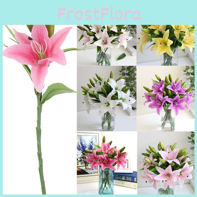 Brightly Colored Realistic 38cm Artificial Lily Millet Flower Bridal Bouquet