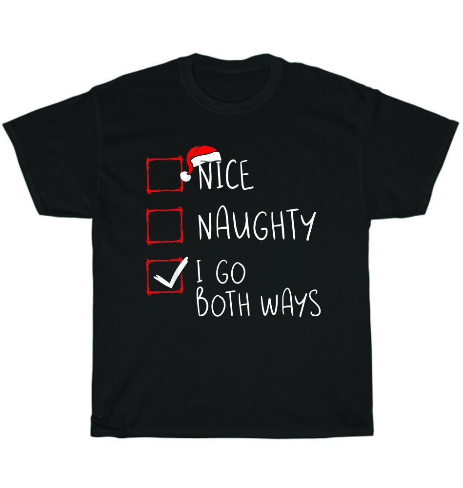 Nice Naughty I Go Both Ways Christmas List Xmas Santa Claus T-Shirt Unisex Gift — buy online with free worldwide shipping!