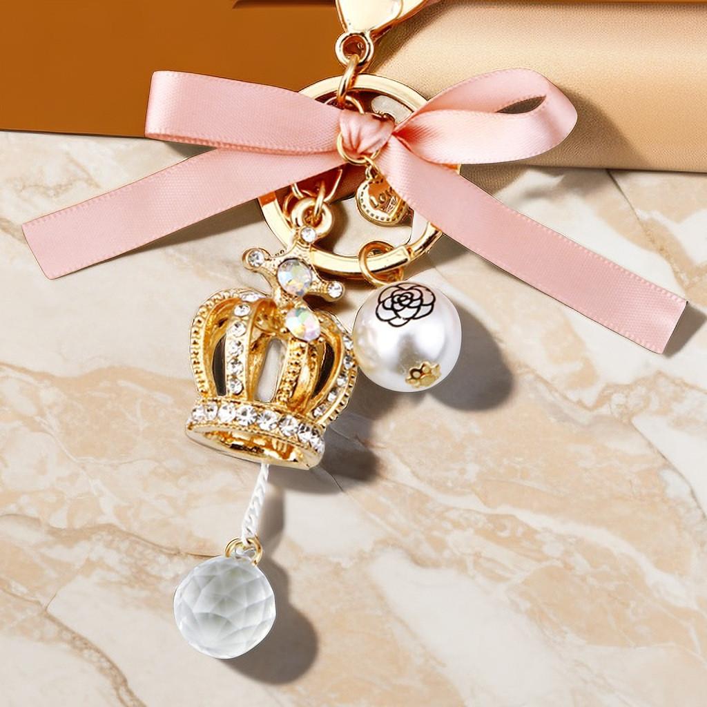 Stylish Design: This keychain features a delightful crown tassel design adorned with brilliant crystals and charming pearl accents, making it a fashionable accessory for any woman.
