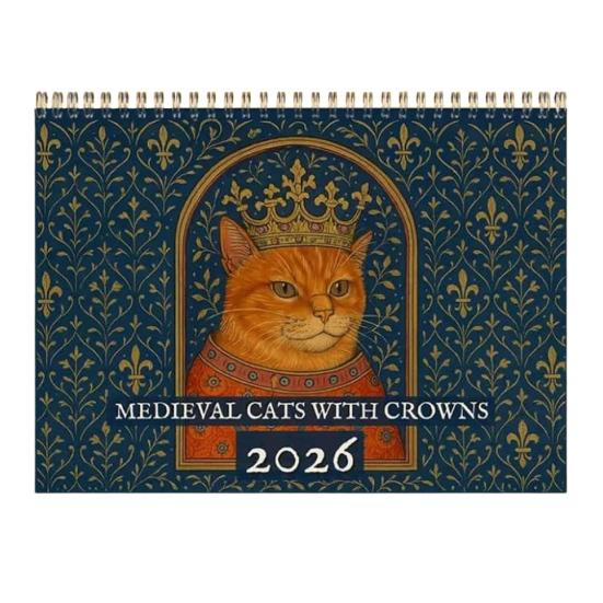 2026 Medieval Cat Calendar with Crowns Whimsical Art Monthly Wall Calendar Unique Gift for Cat Lovers — buy online with free worldwide shipping!