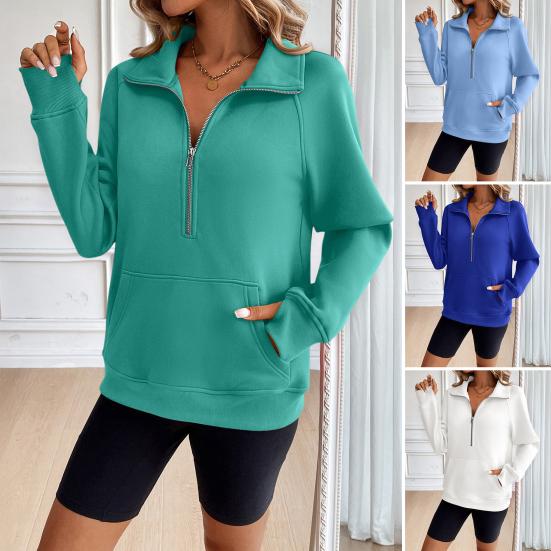 Women's Sweatshirts Half Zip Long Sleeve Lapel Sweater Casual Pullover Top with Pocket Autumn Loose Clothes — buy online with free worldwide shipping!
