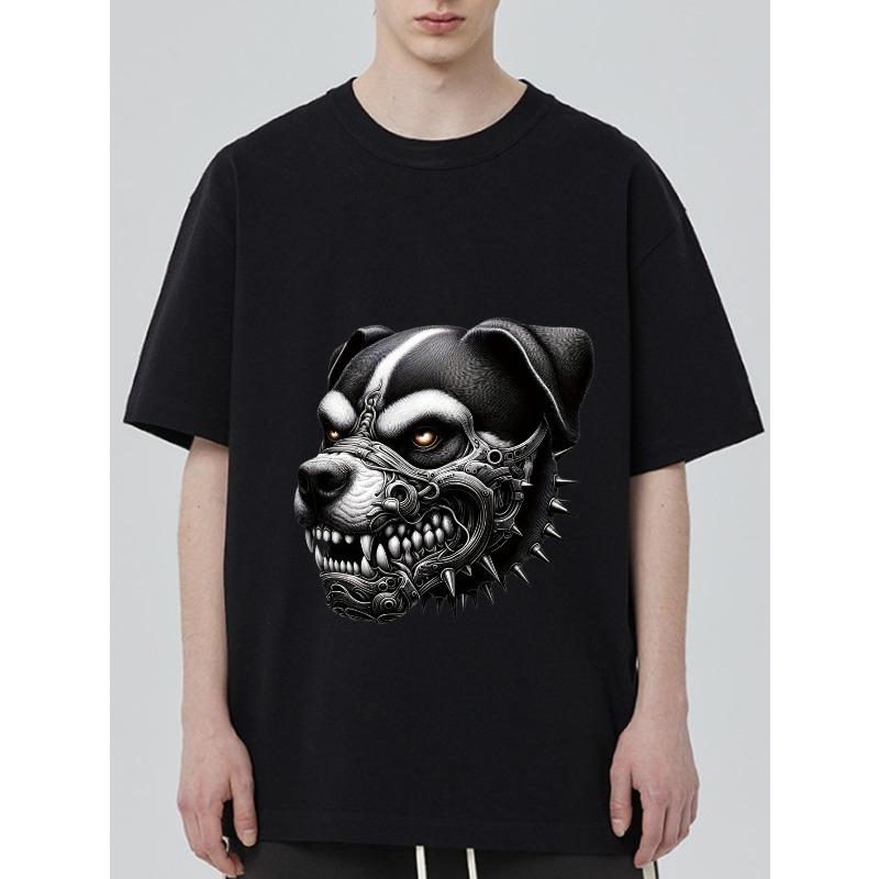 Black T Shirt with Dog Head Mechanical Design for Casual Wear — buy online with free worldwide shipping!