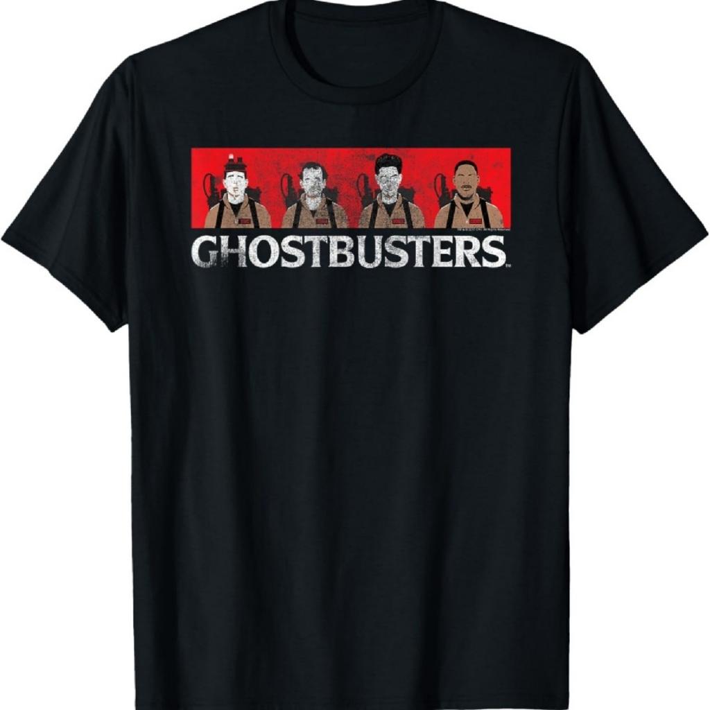 Ghostbusters Character Faces Distressed Illustration Movie T-Shirt — buy online with free worldwide shipping!