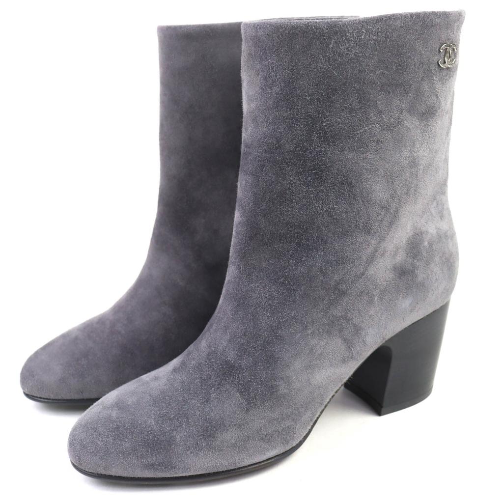 Excellent CHANEL short boots COCO Mark suede leather ankle boots gray 37 G32213 Used — buy online with free worldwide shipping!