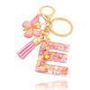 A-Z Dreamy Letters Keychain for Women Tassels Butterfly Pendant Initial Keyrings Purse Suspension Bags Car Key Chain Pink