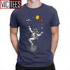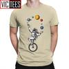 Man Men T Shirts Space Astronaut Riding Bicycle Juggling Solar System Planets Funny Short Sleeves Tees Tops Cotton T-Shirt