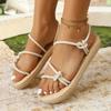 Fashion Shoes for Women 2024 New Fishnet Woven Women's Sandals Casual Lace Up Flat Beach Sandals Large Size Fashion Summer Female Shoes