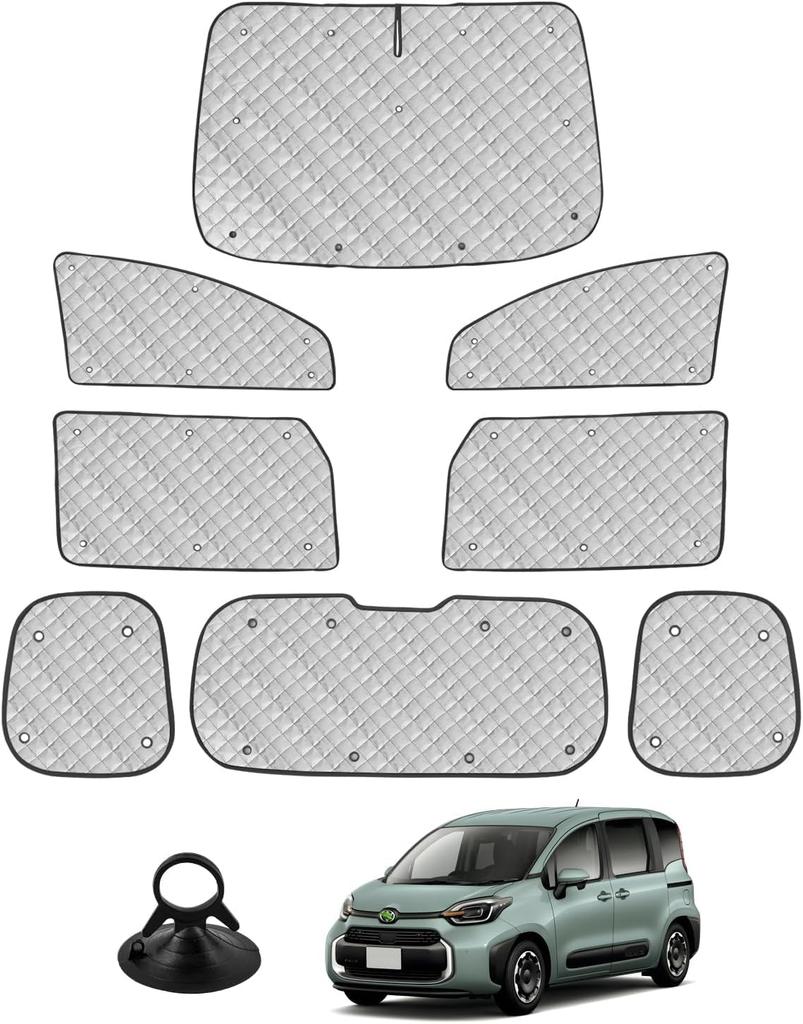 Cartist New Sienta MXP Series Sunshade Full Set, Multi-Window Sunshade, Blackout Shade Curtains, 6-Layer Construction, Mesh Sunshade for Car Camping (Not Compatible with Dash Cams), Compatible with SIENTA 10 Series (3rd Generation, August 2022 - Present), Vehicle-Specific, Protects Privacy, Heat Protection, Car Naps, UV Protection, Anti-Theft, Sunshade, Suction Cups, Easy Installation, Storage Pouch Included, Manufacturer Direct, Silver/Black, 8-Piece Set