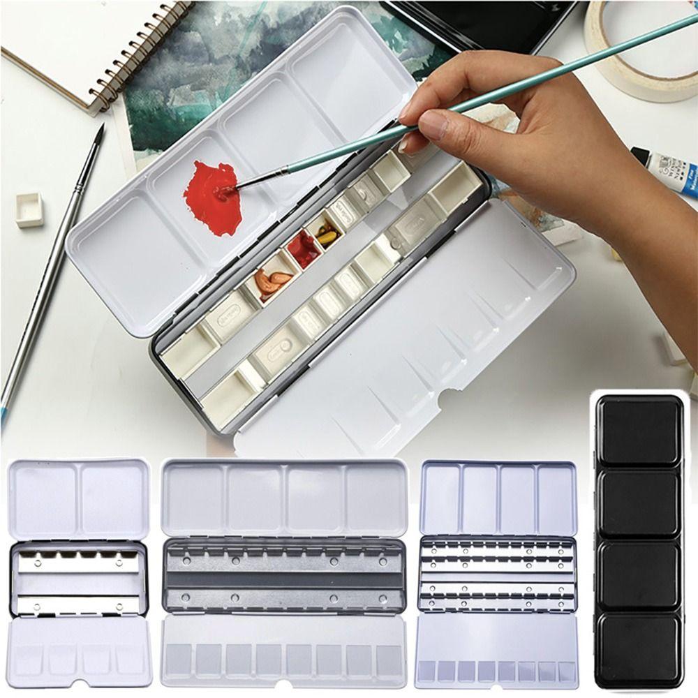 Flip Cover Drawing Supplies Empty Paint Palette Watercolor Storage Case Grids Slots Pigment Box