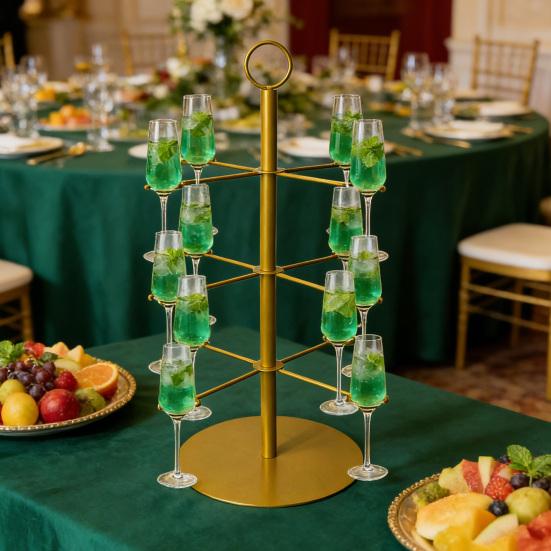 Champagne Tower 3 Tier 12 Brackets Cocktail Tree Stand Metal Wine Glass Display Holder Party Bar Wedding Cocktails Martini Margarita Wine Drinks