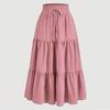Women's Fashion Solid Color Floral Drawstring Elastic Waist Loose Long Skirt