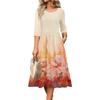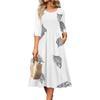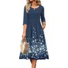 3/4 Sleeve Women's Dress Casual Flowy A-Line Midi Tshirt Dresses With Pockets Crewneck Vocation Boho Beach Sundress — buy online with free worldwide shipping!