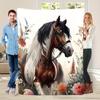Spring Floral Horse Fleece Blanket Boho Equestrian Style Throw Blanket Soft Cozy for Country Home Decor Spring Outdoor Lounging — buy online with free worldwide shipping!