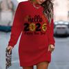 Ladies' Elegant, Fashionable, Trendy and Casual Hoodie,New Year Element Printed Three-dimensional Cut Women's Long Red Hoodie