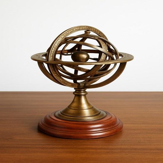 Historical Celestial Design – Features engraved armillary rings representing ancient astronomical concepts.