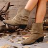 Boots for Women Slouchy Mid Calf V Cut Western Boots Fashion Block Low Heel Booties Brown Suede Short Booties — buy online with free worldwide shipping!