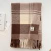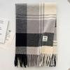 Long Tessel Plaid Wool Scarf Thicken Men Scarf Simple Winter Cashmere Scarf Female