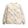 Women Winter Down Coat Rhombus Texture Stitching Thick Padded Pockets Long Sleeves Solid Color Single-breasted Elastic Cuff Lady Jacket