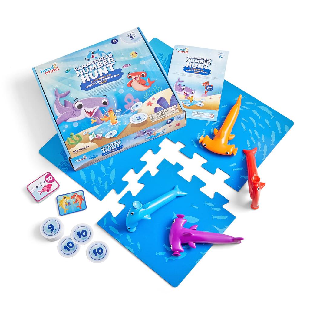 Learning Resources' Hammerhead Number Hunt, loved in over 100 countries worldwide, is an educational toy that uses hammerhead shark-shaped hammers to help children develop number recognition, addition, subtraction, and other math skills while playing.