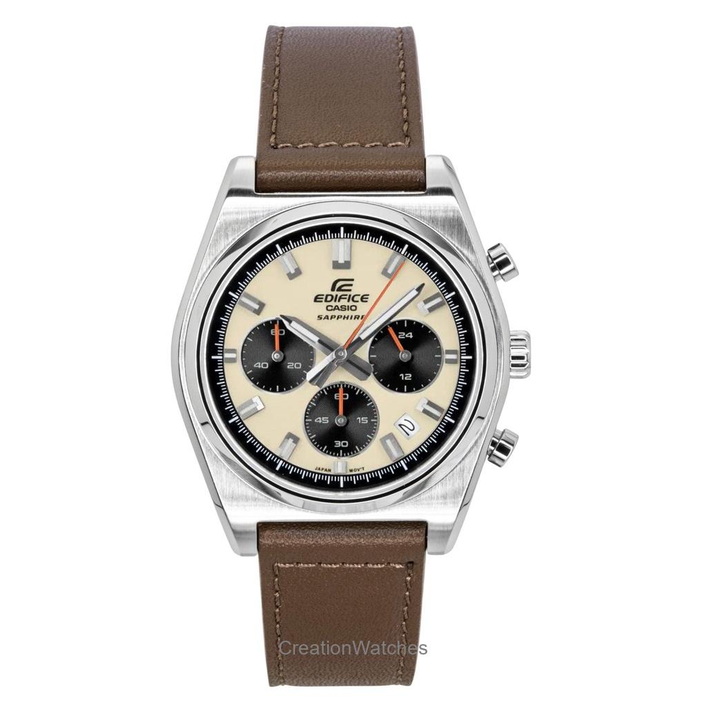 Casio Edifice Analog Standard Chronograph Leather Strap Ivory Dial Quartz EFB-730L-7AV 100M Men's Watch