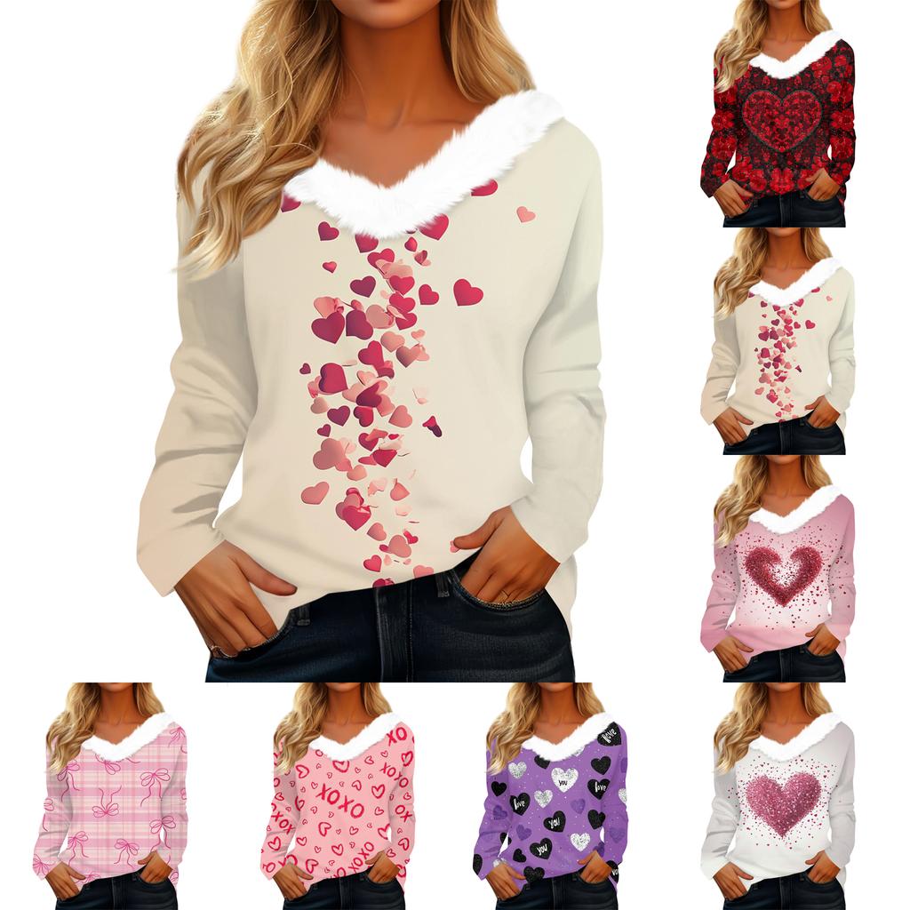 Women's Valentine's Day Printed Long-Sleeved Shirt, V-Neck, Casual Loose-Fitting T-Shirt Top — buy online with free worldwide shipping!