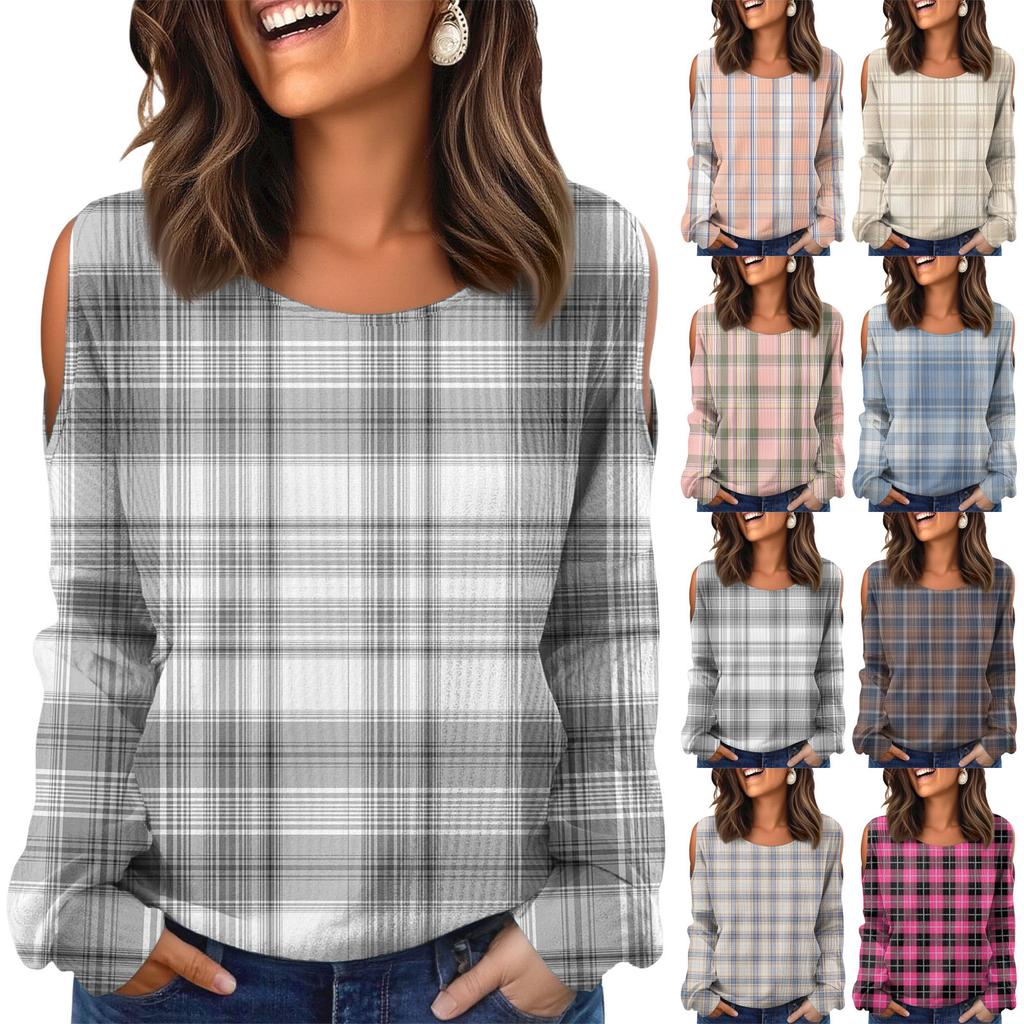 Women's Winter Oversized T-Shirt Fashionable Off-the-Shoulder Round Neck Vintage Floral Print Pullover Long-Sleeved Top — buy online with free worldwide shipping!