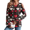 Women's Winter Oversized T-Shirt Fashionable Off-the-Shoulder Round Neck Vintage Floral Print Pullover Long-Sleeved Top — buy online with free worldwide shipping!