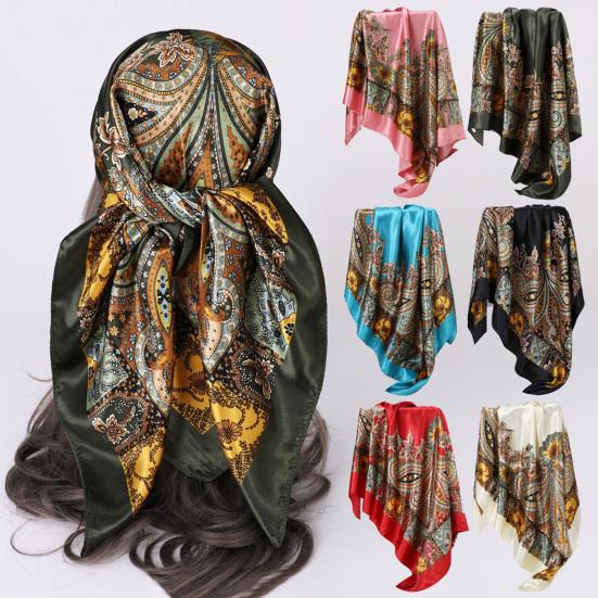 The exquisite waist flower pattern on this square scarf exudes elegance and beauty, making it a fashionable choice for various outfits. Its versatility allows you to use it as a scarf to keep warm, a headscarf to enhance your hairstyle, or even as a strap to accessorize your bag. Practical and stylish, this kerchief is suitable for daily wear, parties, outings, dates, school, and more.
