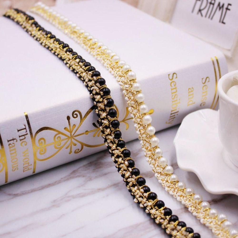 Needlework Applique Fabric Beaded Lace Ribbon Hand-stitched Pearl Lace Trim Pearl Braid Lace Ribbon — buy online with free worldwide shipping!