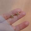 Корейская версия утонченного темперамента Simple Wild с белым цирконием Серьги-бантики Игольчатые милые сетчатые красные серьги
