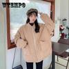 Зимняя теплая дубленка из флиса с натуральным мехом, короткое плюшевое пальто с карманом