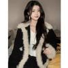 Черная меховая интегрированная куртка женская короткая зимняя одежда новая утолщенная термолокомотивная одежда куртка верхняя часть