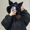 Вышитая черная толстовка с капюшоном, имитирующая овечью шерсть, осенне-зимняя плотная свободная куртка для девочек