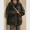 Женская черная куртка с капюшоном — весна-осень в студенческом стиле, свободный крой, рабочая одежда в стиле ретро.
