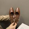 Женская обувь Кожаная обувь 2024 Сезон весна-осень Новая Толстая подошва Квадратный носок Металлическая пряжка Высокие каблуки