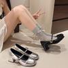 Новые стильные серебристые сексуальные женские туфли на толстом каблуке, модные летние туфли на высоком каблуке для банкета на открытом воздухе, туфли Мэри Джейн с круглым носком, высокие каблуки