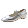 Серебристые туфли-лодочки 2024 года, весна, новые женские туфли-пуанты Mary Jane Pointe с пряжкой и строчкой на низком каблуке, маленькие кожаные туфли