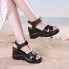Маленькие туфли больших размеров из мягкой кожи для женщин на среднем каблуке, босоножки на танкетке, летние босоножки на толстой платформе для офиса, пляжа, для мам