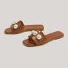 Женские летние пляжные сандалии на плоской подошве с жемчугом — однолинейный дизайн