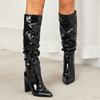 Обувь ботфорты женские эластичные тонкий каблук острый носок боковая молния однотонные модные рыцарские сапоги