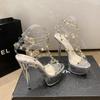 Новые сандалии на тонком каблуке с пайетками, с открытым носком, водонепроницаемые, с ремешком на щиколотке, банкетные свадебные сандалии, супер высокий каблук, женские туфли