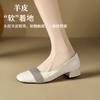 Маленькие одинарные туфли из овчины с квадратным носком, женские весенне-летние новые туфли на толстом каблуке со стразами, с мелким вырезом, Мэри Джейн, женские туфли, маленькие кожаные туфли