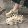 Новые весенние и летние модные спортивные повседневные парусиновые туфли, женская обувь, модная обувь на толстой подошве с увеличенным шнуровкой и круглым носком