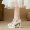 2025 новый весенне-осенний французский квадратный носок, ремешок с пряжкой, супервысокий каблук, женские водонепроницаемые туфли на платформе и толстом каблуке