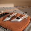 Серебристые французские туфли-лодочки с бантом женские на плоской подошве с открытым вырезом туфли Мэри Джейн с пряжкой на одном слове универсальные маленькие кожаные туфли