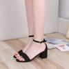 Летняя обувь. Женские повседневные простые удобные сандалии больших размеров с круглой головкой и открытым носком, пряжкой и толстым средним каблуком.