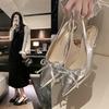 Модные Сексуальные Очаровательные Женские Туфли-лодочки с Декорацией из Шелка и Металла Блестящие Качественные Удобные Туфли на Высоком Каблуке