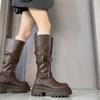 Но женские демисезонные сапоги до колена, новые нишевые сапоги с заклепками, тонкие длинные сапоги, женские сапоги на небольшой толстой подошве в рыцарском стиле