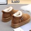 Зимние новые интегрированные с натуральным мехом сноубутсы женские на толстой подошве нескользящие бархатные утолщенные теплые хлопковые ботинки короткие ботинки