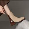 2025 Новые женские ботильоны на блочном каблуке Весенние, осенние и зимние одинарные ботинки Мягкая кожа Универсальный квадратный носок Блокировка цвета